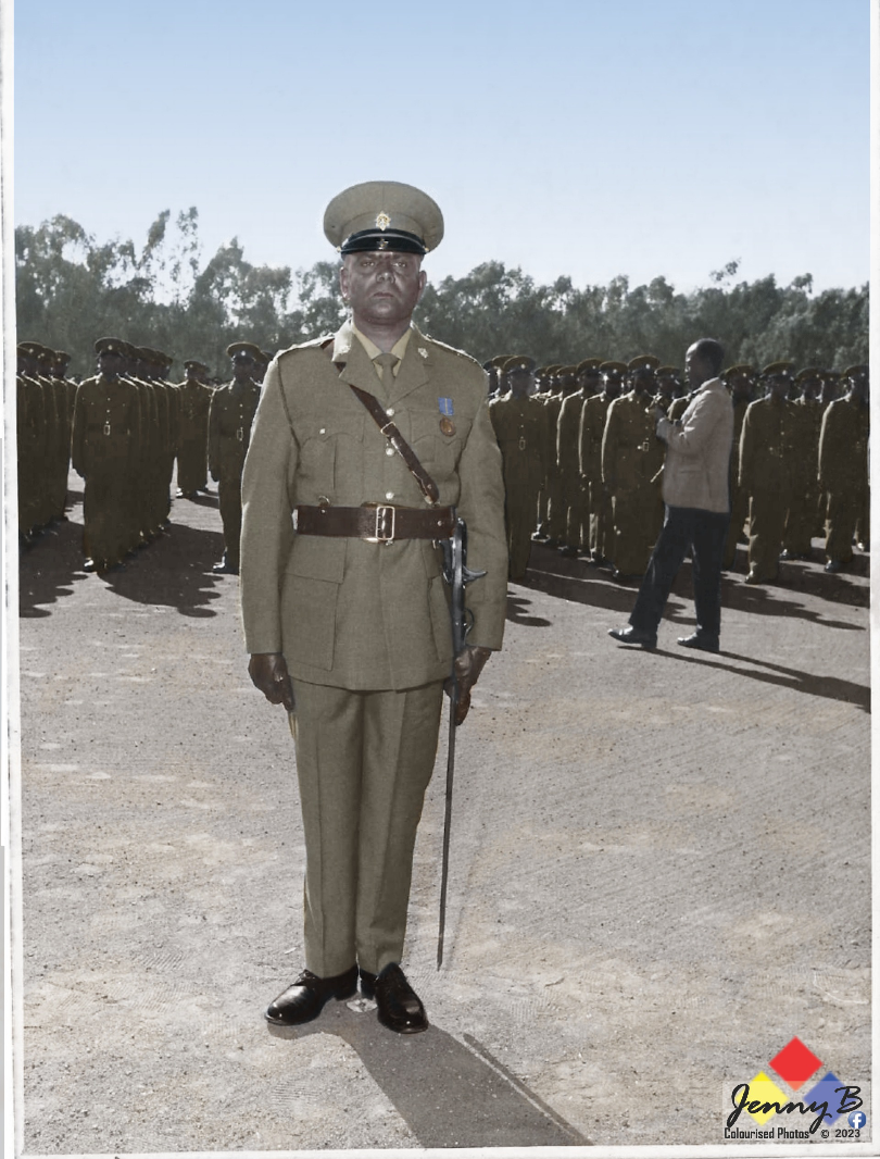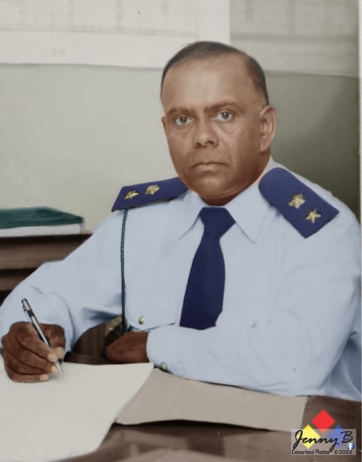 Lieutenant-Colonel Subramonia Pillai in uniform. The original black and white photograph courtesy of Brigadier Natty (NG) Govender. Colourised photo courtesy Mrs Jennifer Bosch