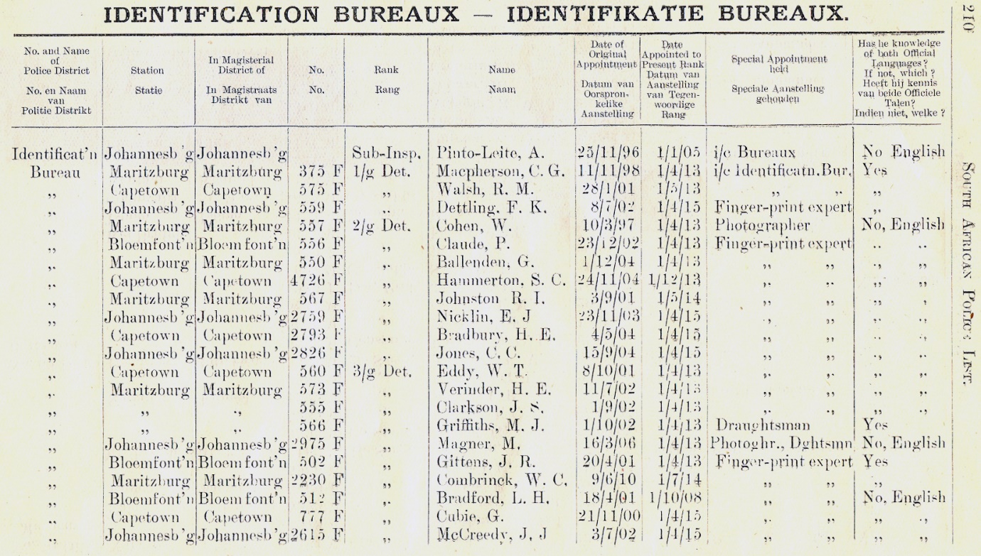 At that time, the Natal Police were even ahead of Scotland Yard in the identification and classification of fingerprints.