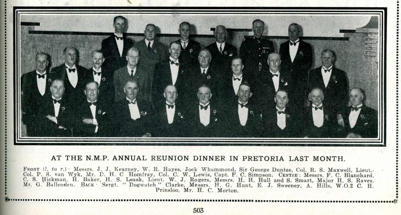 Front Row: Abraham Cilliers, unknown, Sir Theo Truter, Lt-Col GS Beer, Sub-Inspector Graham Ballenden and unknown.