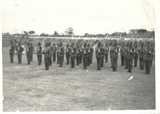 Part of the group of 36 recruits of Platoon 15 0f 1971/2 after successfully passed out on completion of their basic training are seen with the training staff at the Chatsworth Sports Stadium in Unit 03.