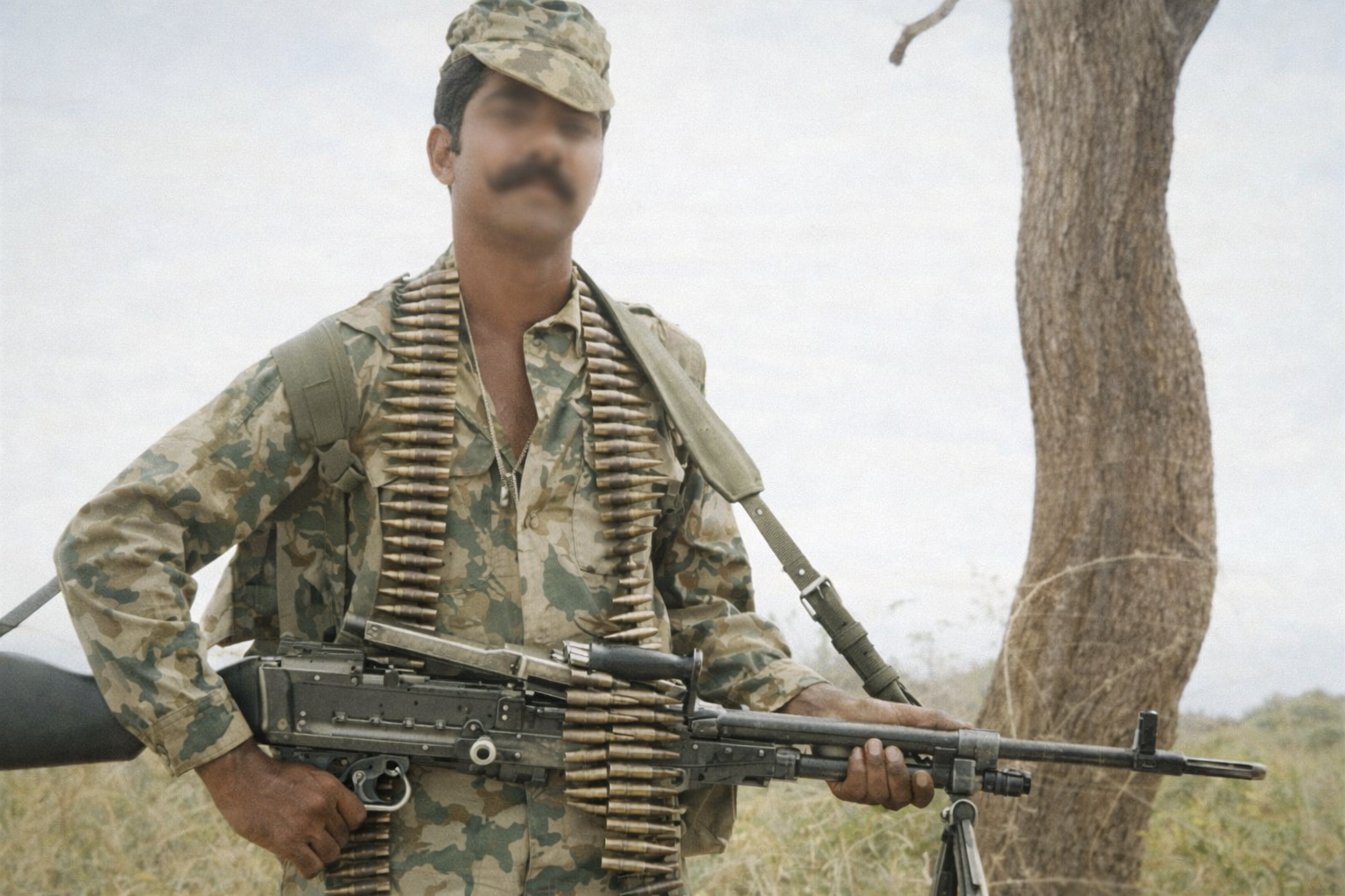 Bala Naidoo with a LMG at the Caprivi Strip during 1973