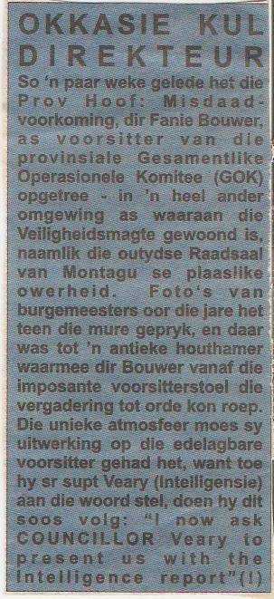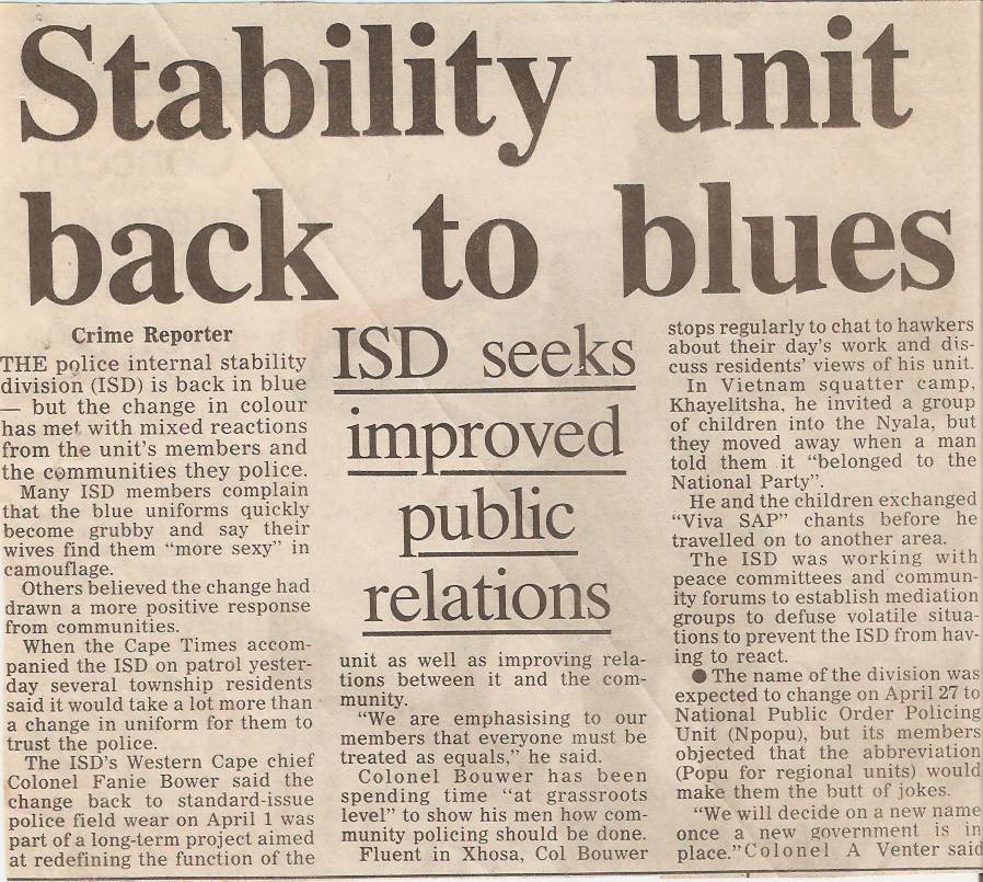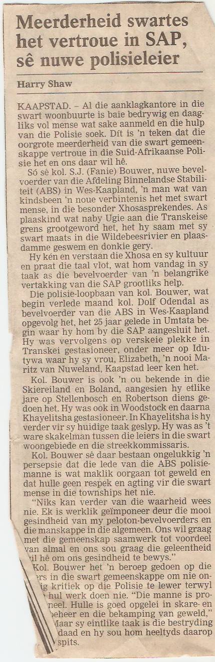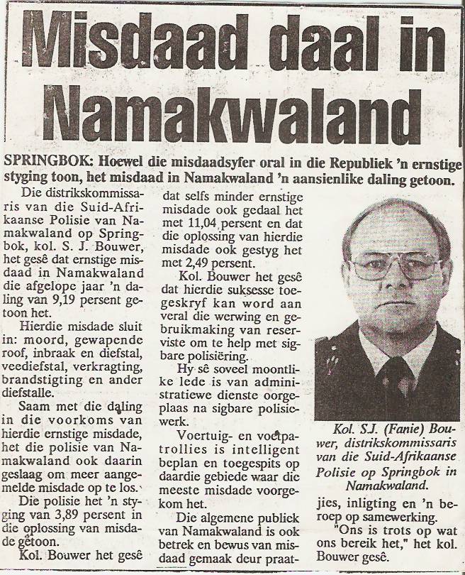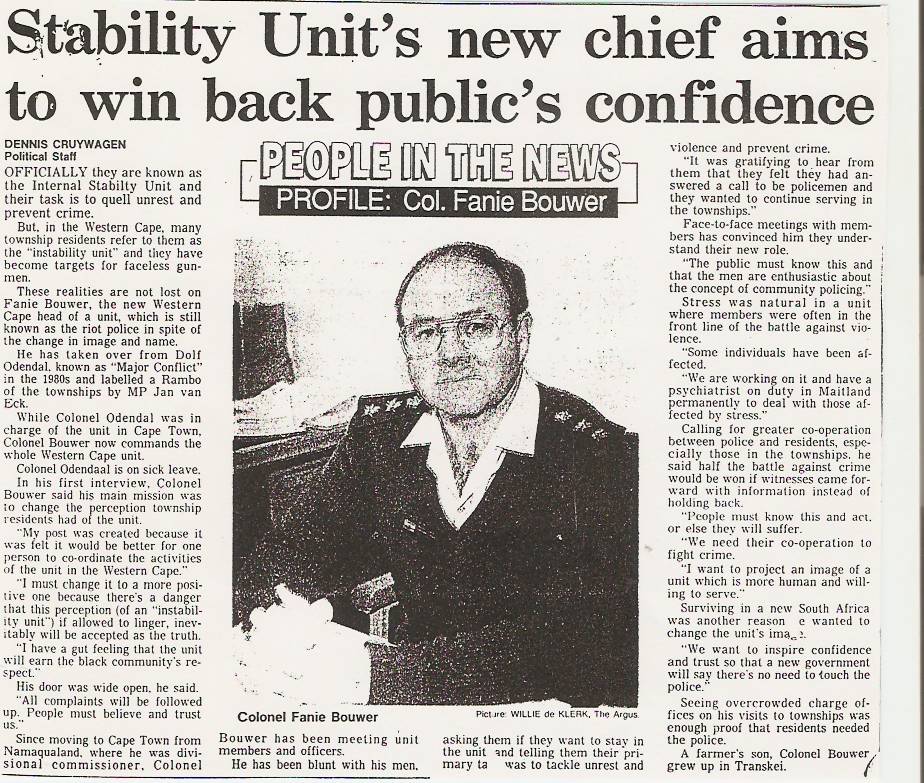 ‘n Artikel toe ek vanaf Namakwaland terug gekom het Kaap toe om die pos van Provinsiale Hoof: Afdeling Binnelandse Stabiliteit oor te neem – Cape Times – Julie 1993