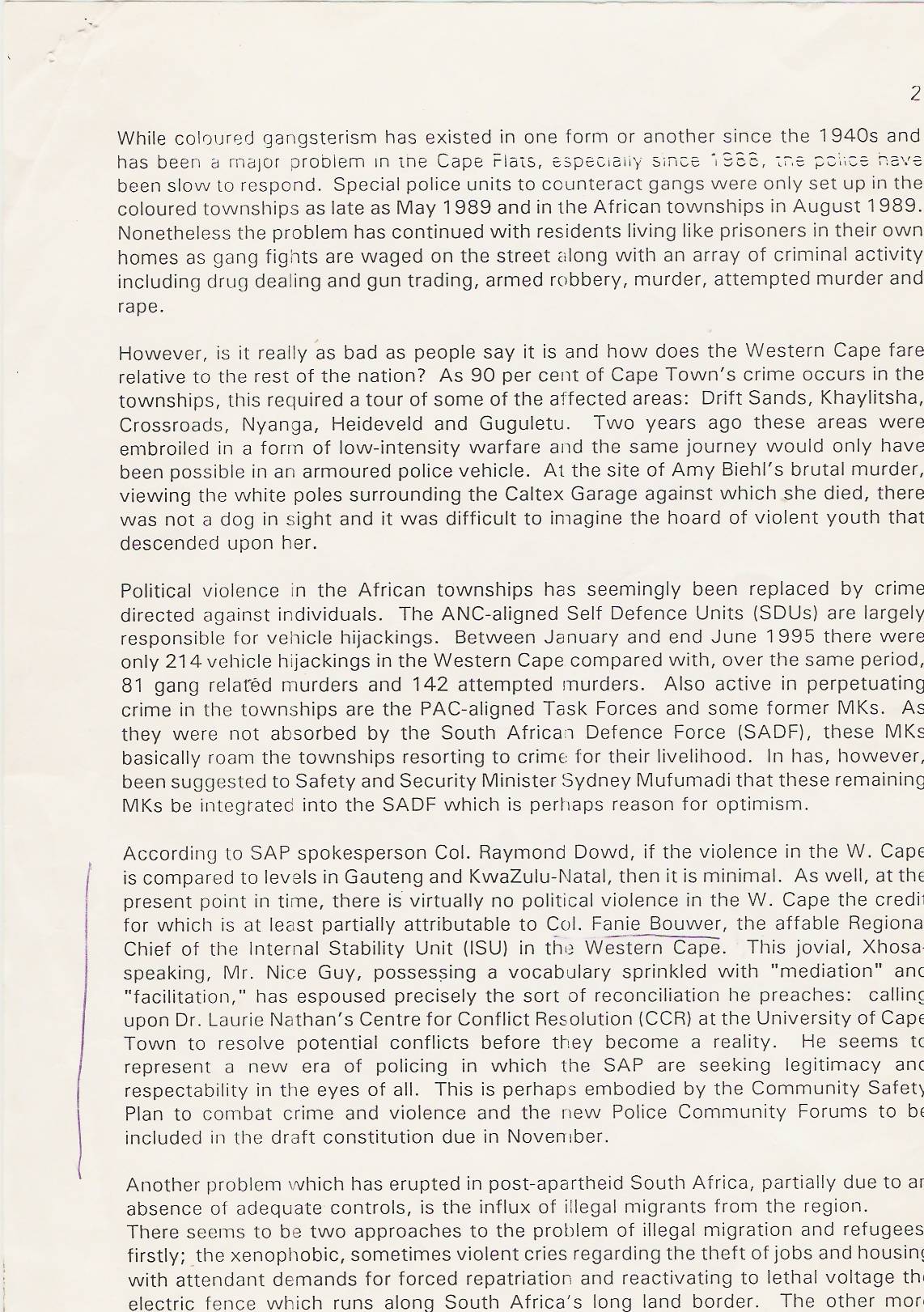 Deel van ‘n verslag van ‘n dame (ek kan haar naam nie meer onthou nie) oor die geweld in die Wes-Kaap – 1993.