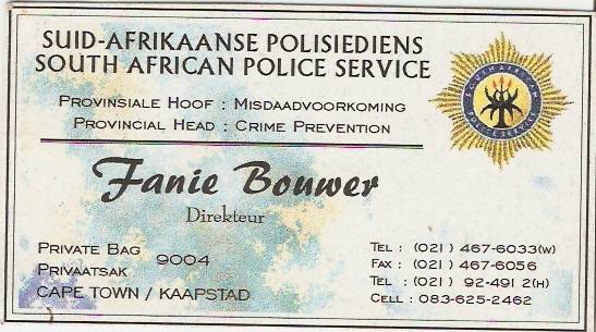 Nogal oulike visite kaartjie waarmee die Polisie ons uitgereik het