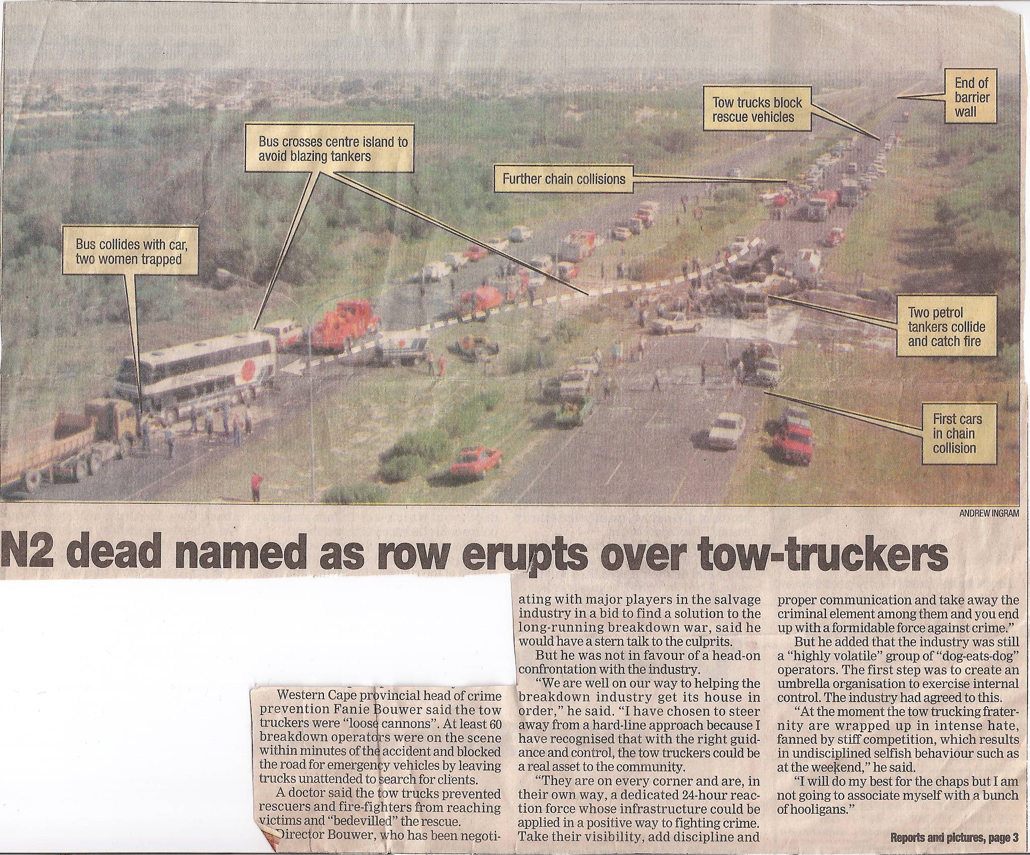 Die “tow-truckers” – of ‘aasvoëls’ soos ek hulle genoem het – is seker van die ongedissiplineerdste spesies wat ek ooit teë gekom het.