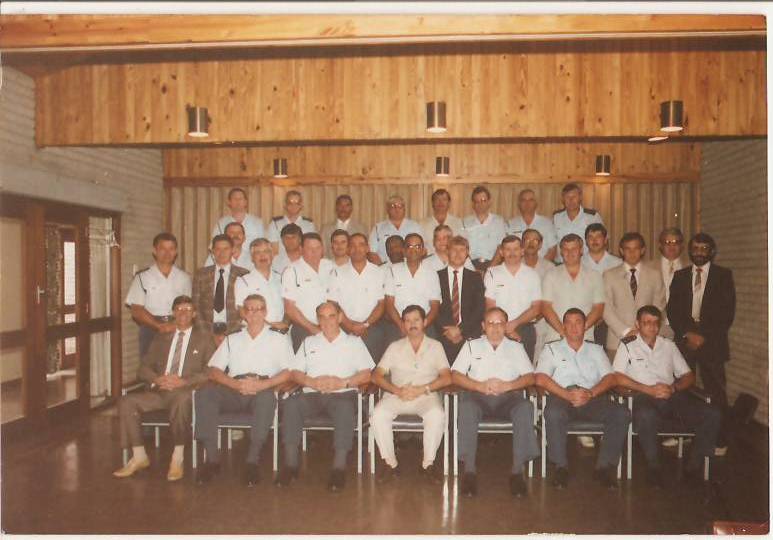 Ek het die voorreg gehad om 2 keer op Stellenbosch gestasioneer te wees. Bo is ‘n groep mede-offisiere met wie ek van my lekkerste jare (1982 – 1987) in die Polisie deur gebring het op daardie manjifieke dorp. Ek sit 3de van regs voor.
