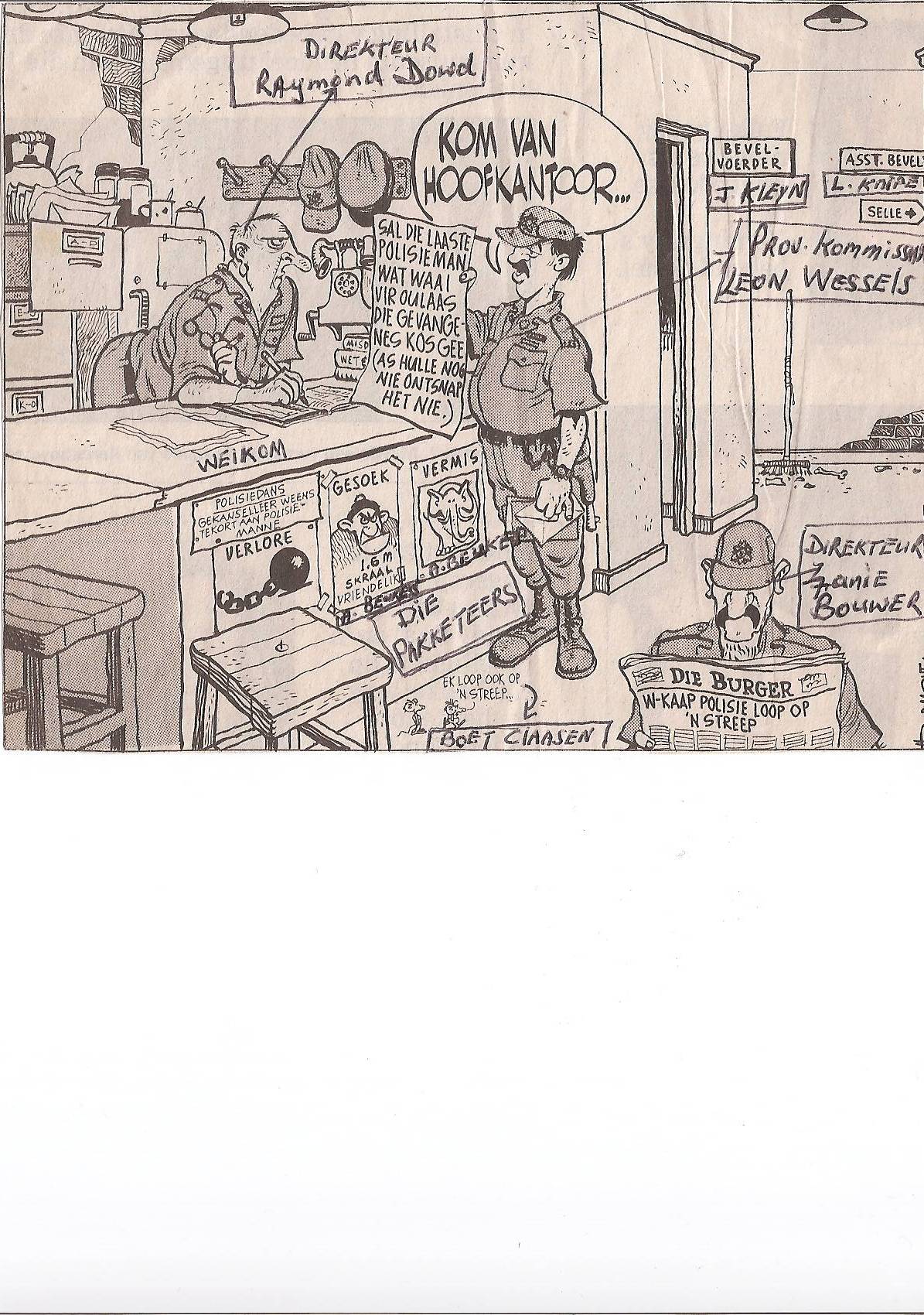 Spotprent hierbo nadat daar berigte gehoor is dat van ons senior polisie-offisiere gaan bedank