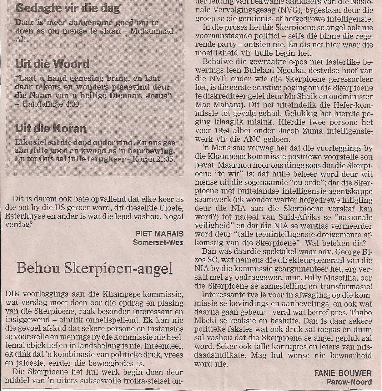 (Hulle darem hierdie brief prominent op hulle voorblad geplaas)