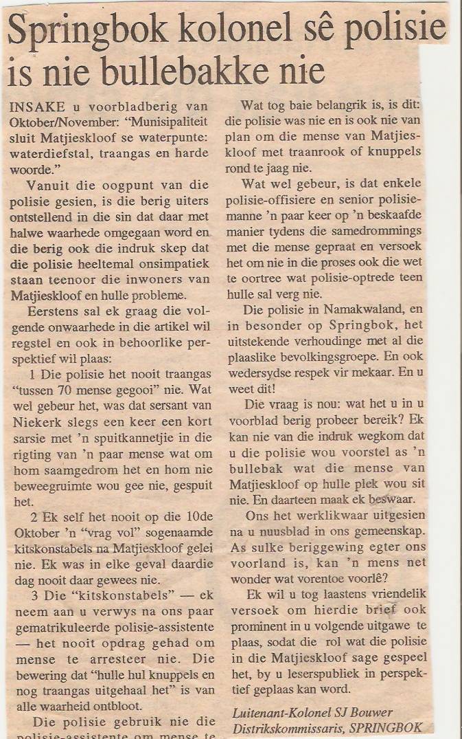 My brief aan ‘n nuut-gestigte plaaslike (linkse) koerantjie – 1993 – toe hulle bollie daarin oor die Polisie geskryf het.