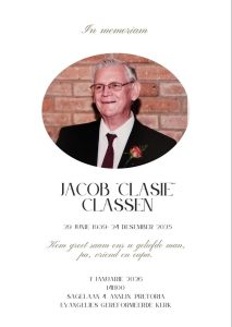 HULDEBLYK – JS (CLASSIE) CLASSEN †