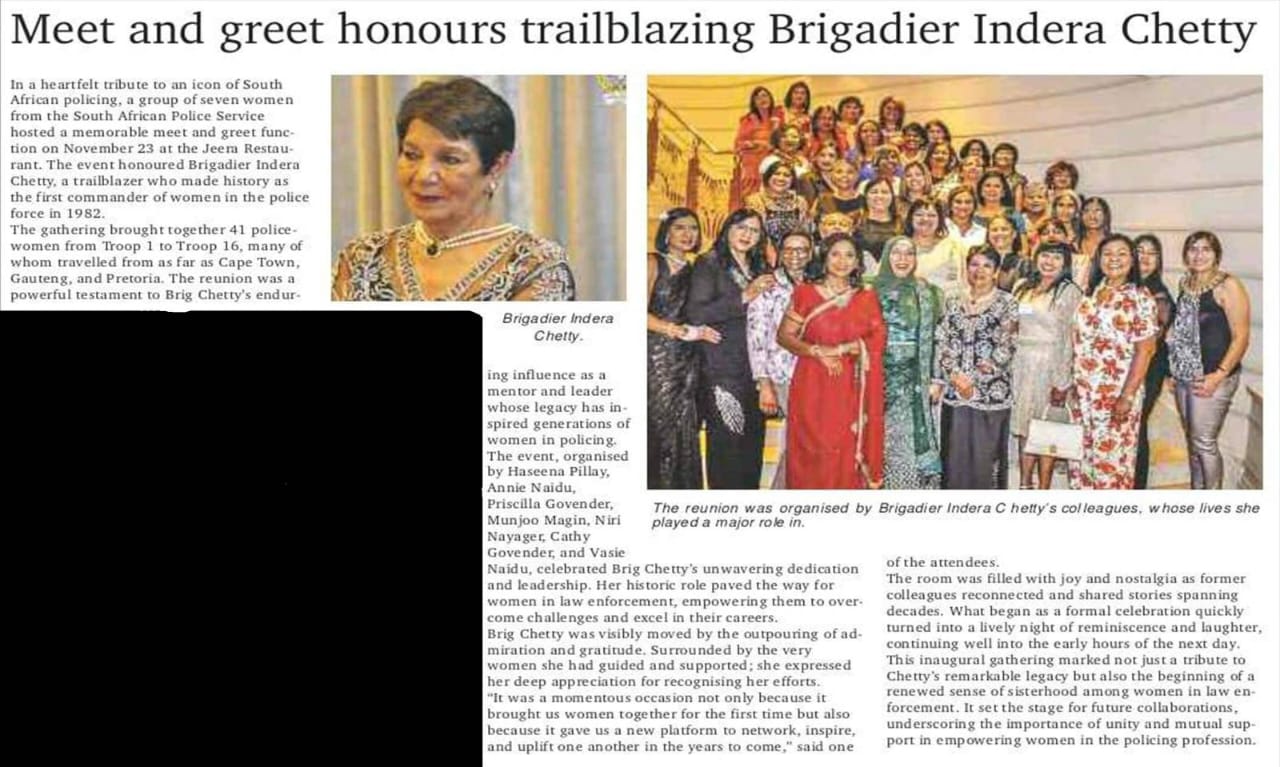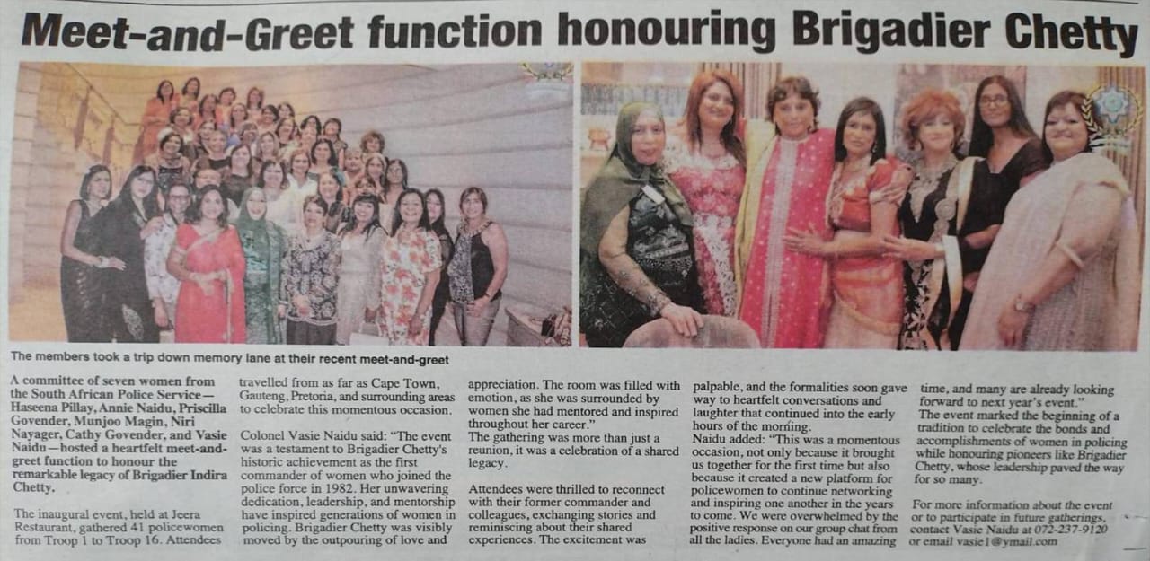 The group recently celebrated their year-end function at Coastlands, Umhlanga on the 25th of October 2025. Formed in 2024, this growing network of retired and active South African Police Service (SAPS) women from across the country are dedicated to supporting and inspiring each other, both personally and professionally. Many members have proudly served the police and its communities for over four decades. With the resounding success of the previous two functions, they look forward to many more and years of service, sisterhood and making a difference.
