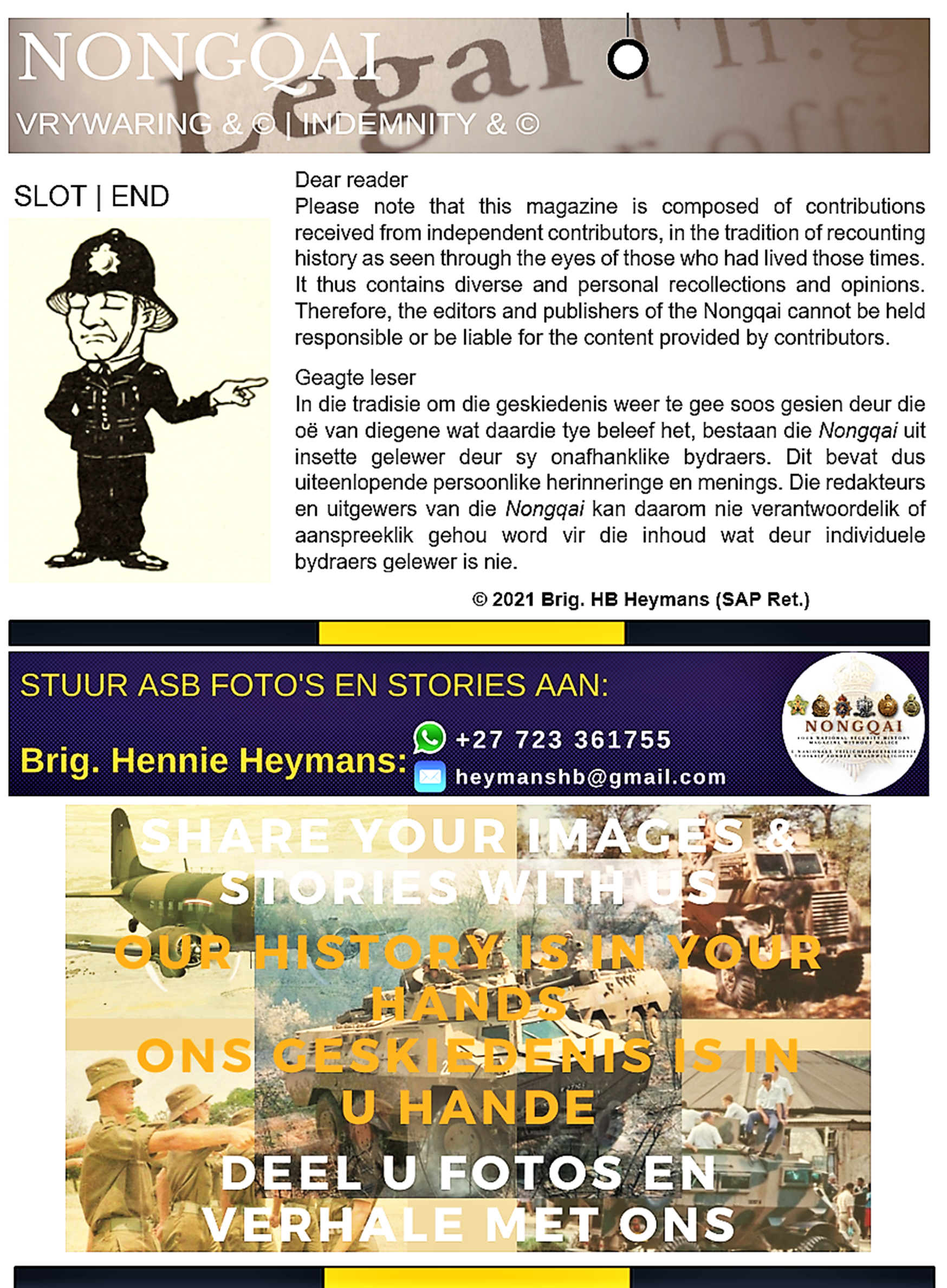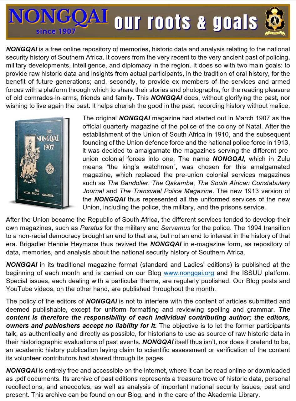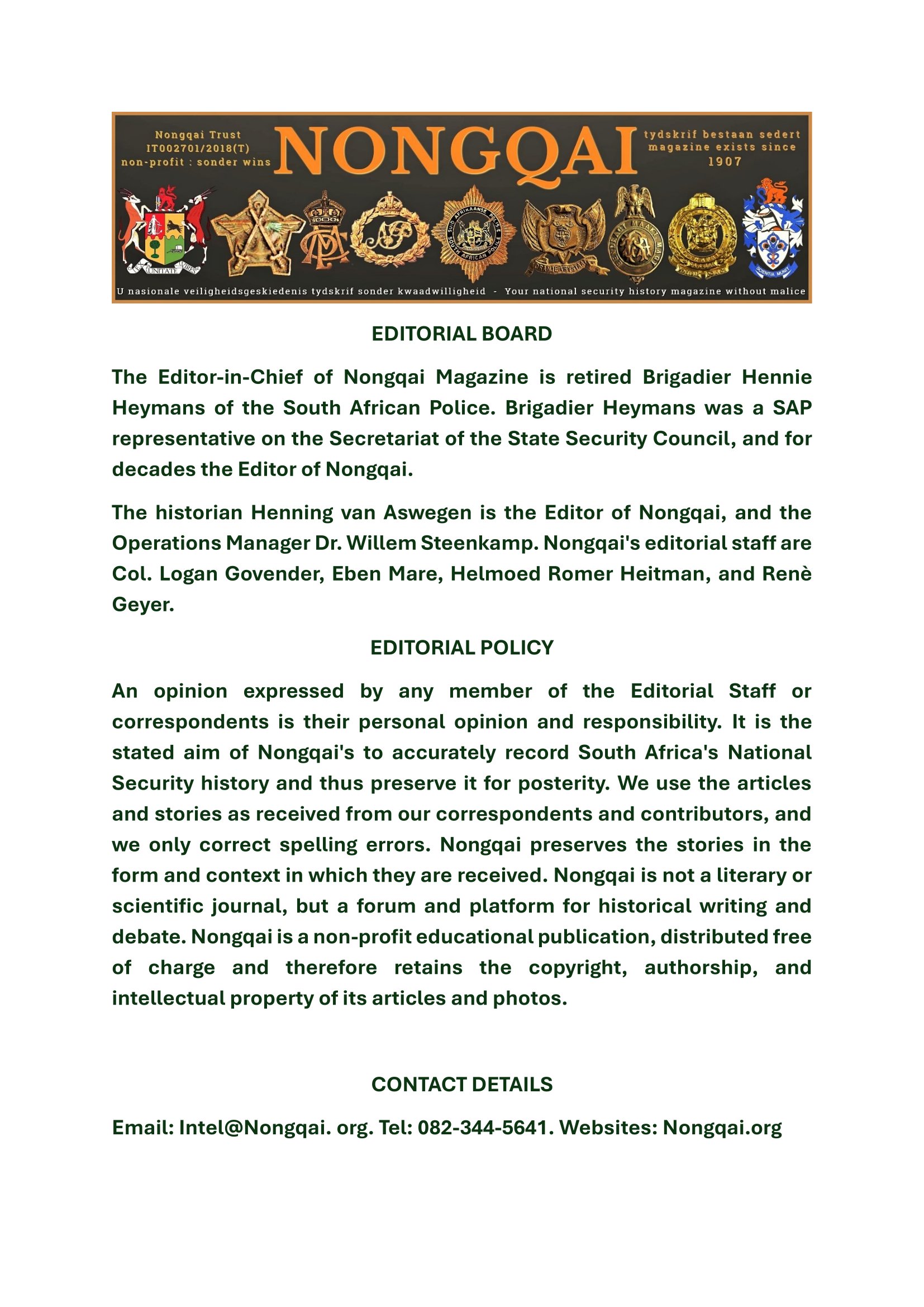 - Brigadier Hennie Heymans [HBH], Editor-in-Chief of Nongqai, whose scholarship, experience, and visionary dedication made this Special Edition of Nongqai for Lieutenant-Colonel Ray Mathura Munilall possible.
