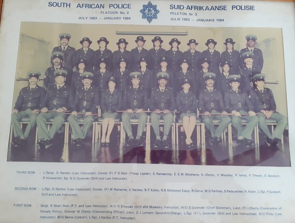 A Stalwart of SA Police, Chatsworth, Unit 02 & Unit 05, later SA Police, Training College, Chatsworth and Supply Chain Management, Durban, KwaZulu-Natal. An experienced and highly skilled officer with an exceptional memory.