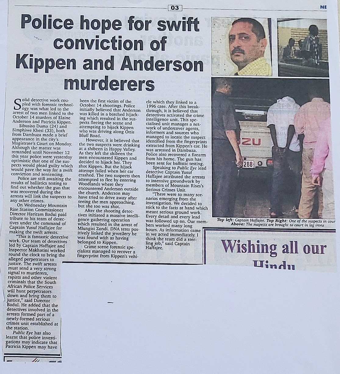 “Following the speedy, successful conviction of the murderers of Northdale nurse Maalthie Mownchan, Stephanie Saville went to interrogate seasoned detective Captain “Pipes” Haffajee of the Mountain Rise Serious and Violent Crime Unit to uncover how he solves his cases.