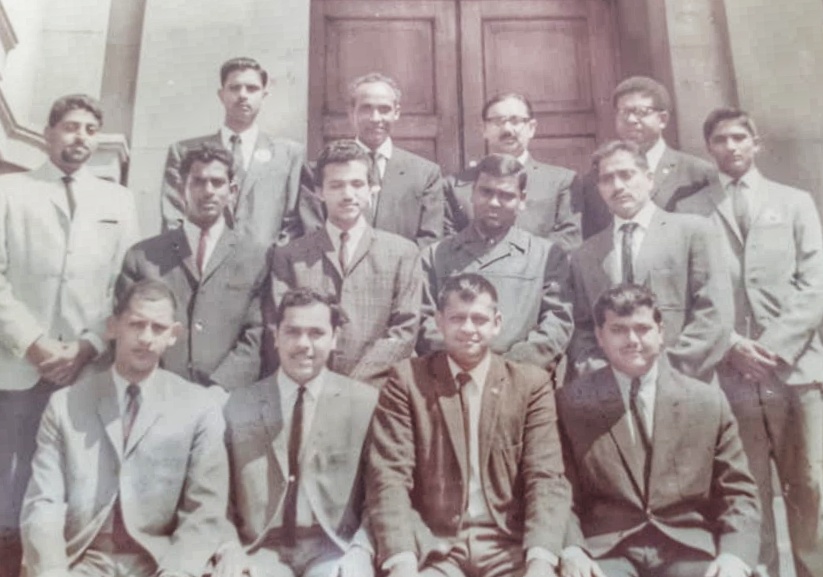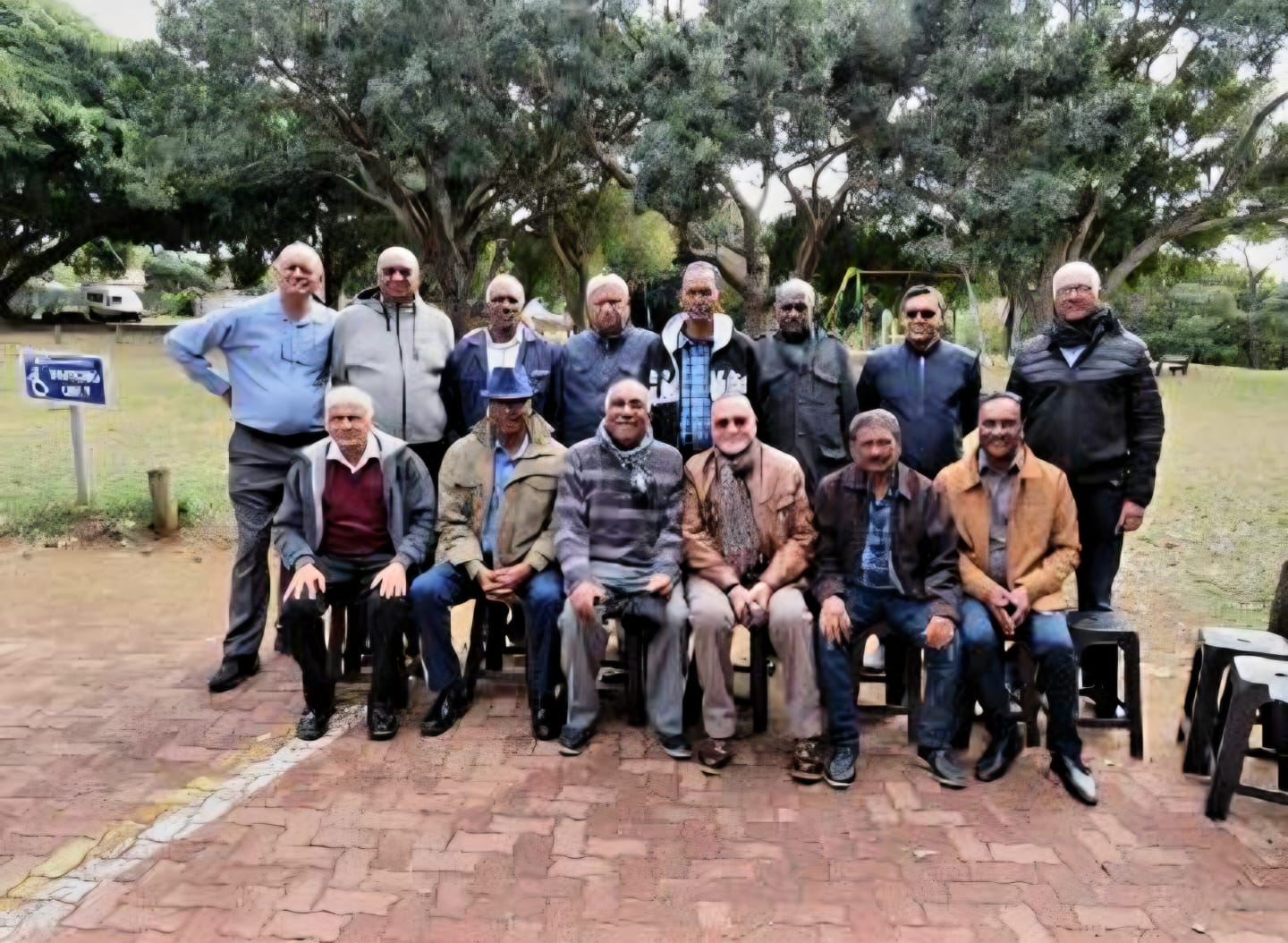 A group of Durban Indian Businessmen that served at Durban Central as reservists during the 1960’s seated outside the Supreme Court Buildings in Mangrove, Durban