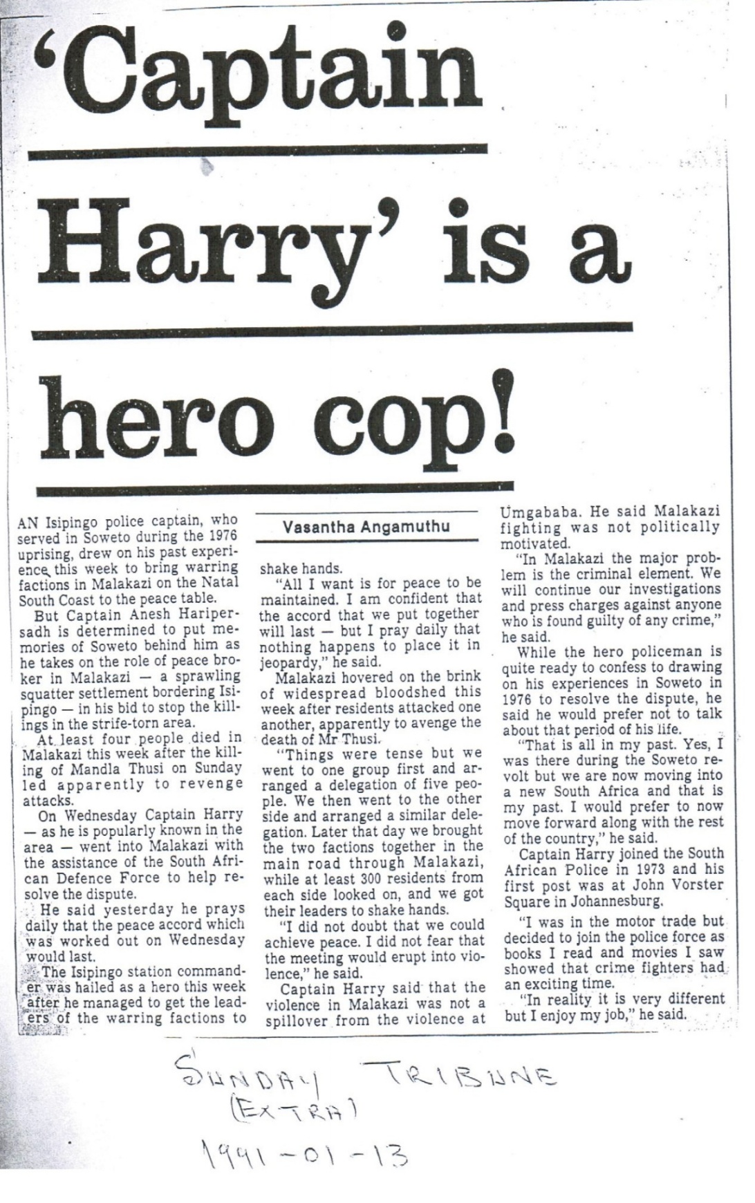 One of the most remarkable moments in Haripersad’s career occurred in 1991, while he was serving as Captain and Station Commander at Isipingo Police Station.