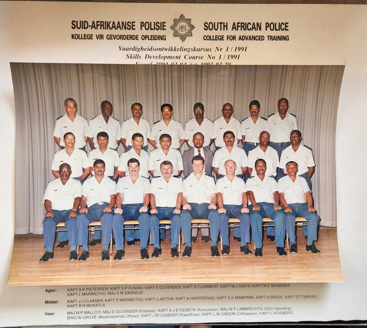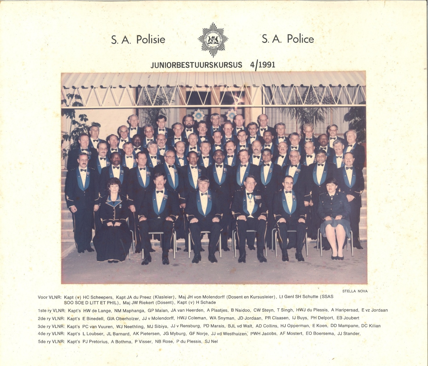 Our course leader Brig Schenck passed away recently. My sympathies and condolences to his family, friends and then Candidate Officers Course of 1984. See Course photo. Found the original. This is the best print I got. This photo is important because it has late Brig Schenck, our course leader. If time permits.” – Major General (Professor) George D Govender.