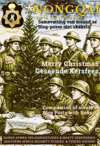 Our November cover is designed by Nongqai Emiritus member Dr Willem Steelkamp, showing South African Forces celebrating the Festive Season and Christmas in North Africa during World War Two.