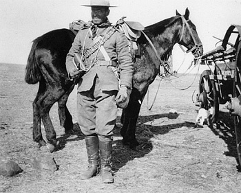 Trooper of the Strathcona’s Horse in South Africa. This image strikingly shows why Strathcona’s Horse, perhaps more than any other unit in South Africa, became identified with the popular image of the Canadian cowboy.