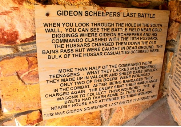 The memorial to what is rather grandiloquently termed “Gideon Scheepers Last Battle”.