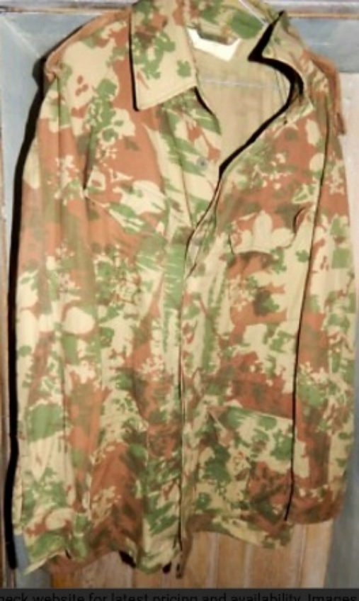 “The ‘Lizzy Pattern’ is a camouflage design featuring a mix of earth tones – browns, greens, and tans – in a splotted, disruptive pattern. It was designed for blending into the bushveld terrain of southern Africa. Think irregular shapes, kinda like a mix of spots and blobs, helping to break up the outline of personnel and gear in vegetation-rich environments”