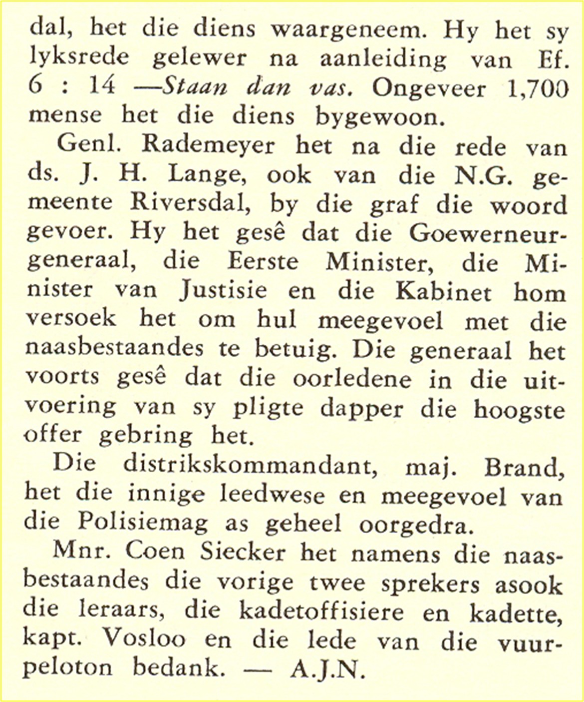 The official police version, vide SAPS Museum File 667-29/2/1B- 6/14-1, is as follows: