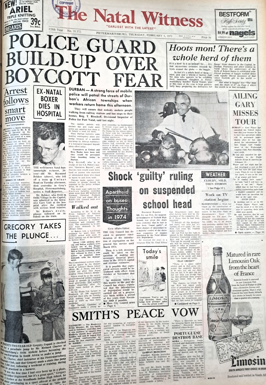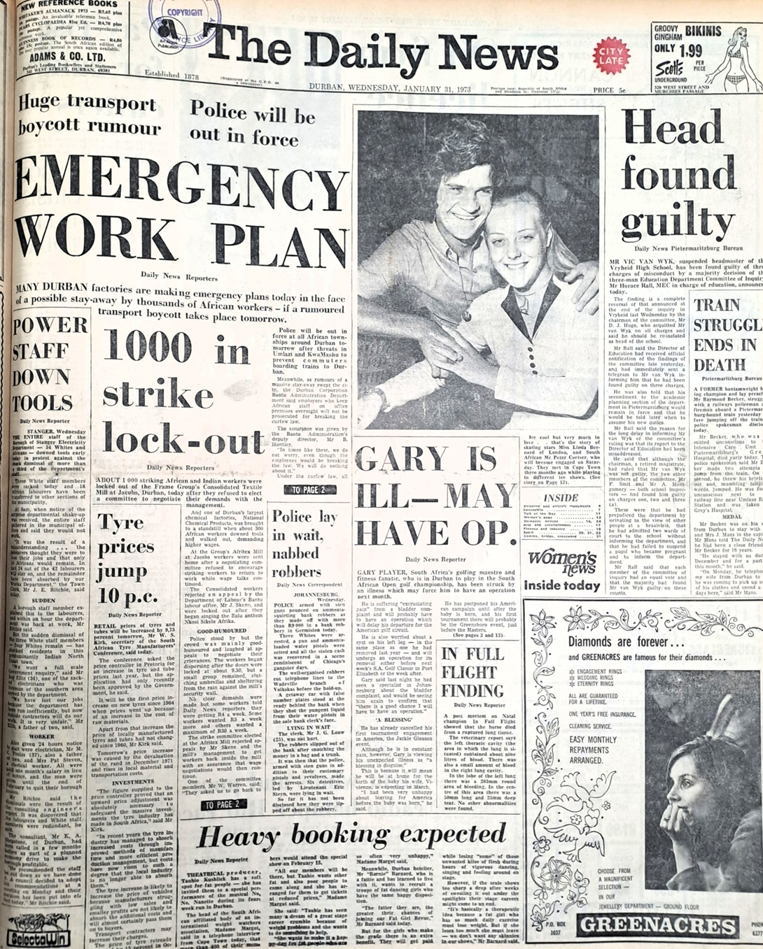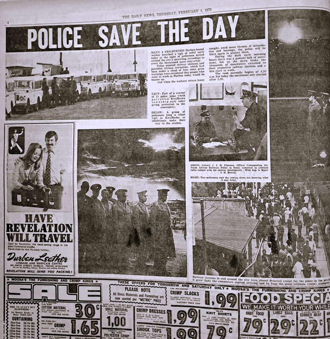 By the end of January 1973, the Durban strikes had come to feature as the main daily news story continuously dominating the front pages of practically all South African newspapers.