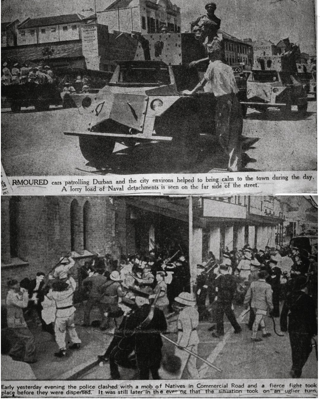 3.2 DURBAN ANTI-INDIAN POGROM, January 1949: The Second World War changed attitudes towards colonialism and notions of racial supremacy. Nevertheless, when in 1949 Durban suffered the earlier-mentioned indiscriminate pogrom by enraged Zulus against Indians, the local English-language press still opined that the Police under the new NP Government should have used more overt force, earlier on – in other words, shooting more in the early stages, thereby making an example that supposedly would have averted the large overall numbers of deaths that eventually occurred.